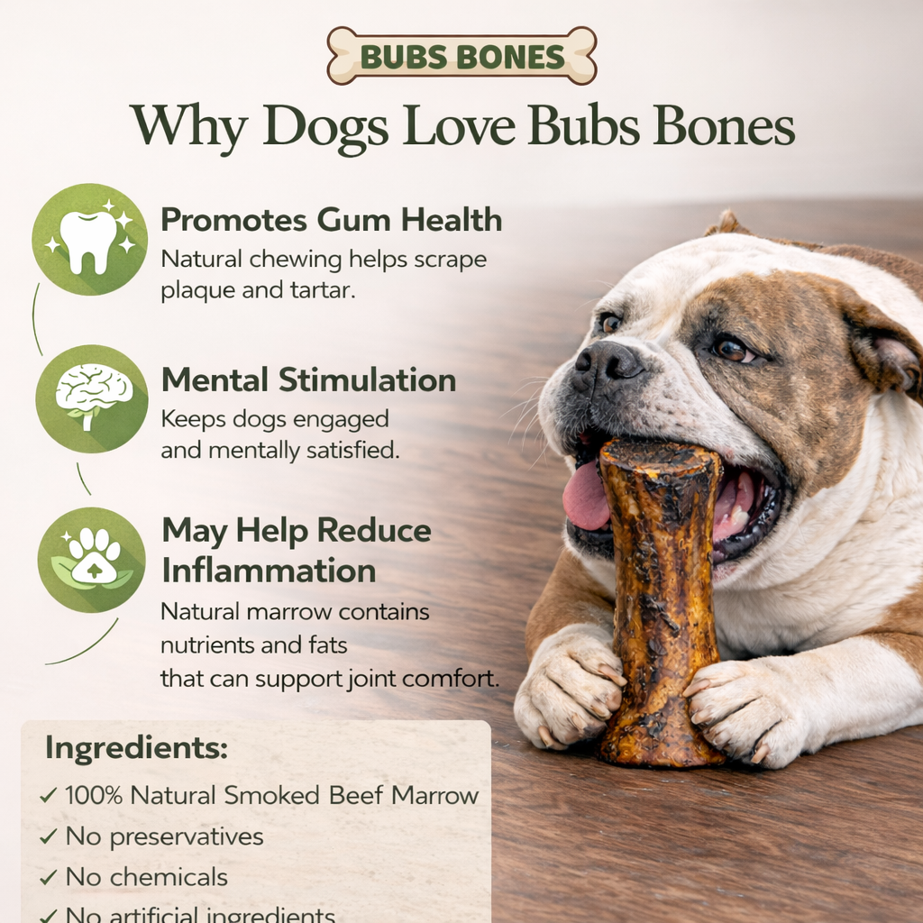 Bubs Bones are single ingredient smoked marrow bones and are 100% natural and locally sourced.